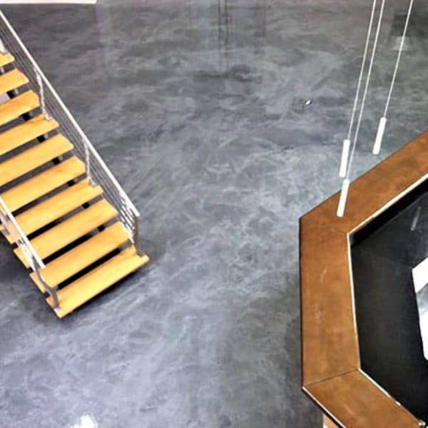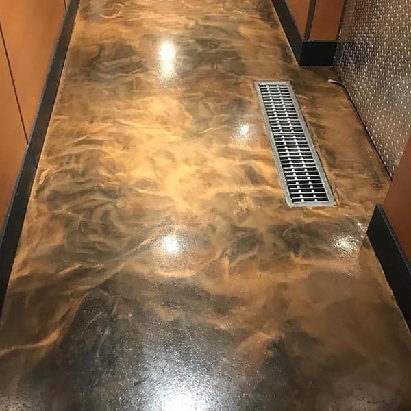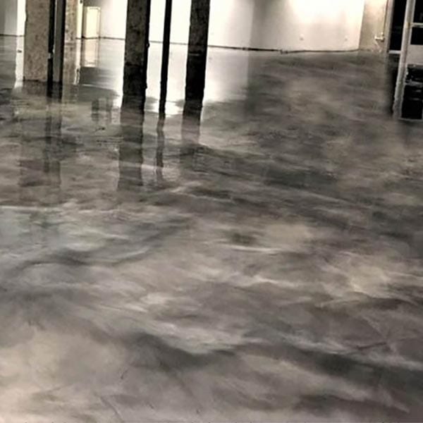 Our Metallic Epoxy provides an artistic, and designer-approved, flooring system. The installation begins by applying a tinted moisture-mitigating epoxy coat, and is followed by the application of a high solid, two-component metallic polymer. Finished with an aluminum-oxide clear coat – to minimize the risk of slips or falls – the Metallic Epoxy is both beautiful and practical. With over 50 color pigment options, we are able to create a Metallic Epoxy flooring that compliments any business and aesthetic.